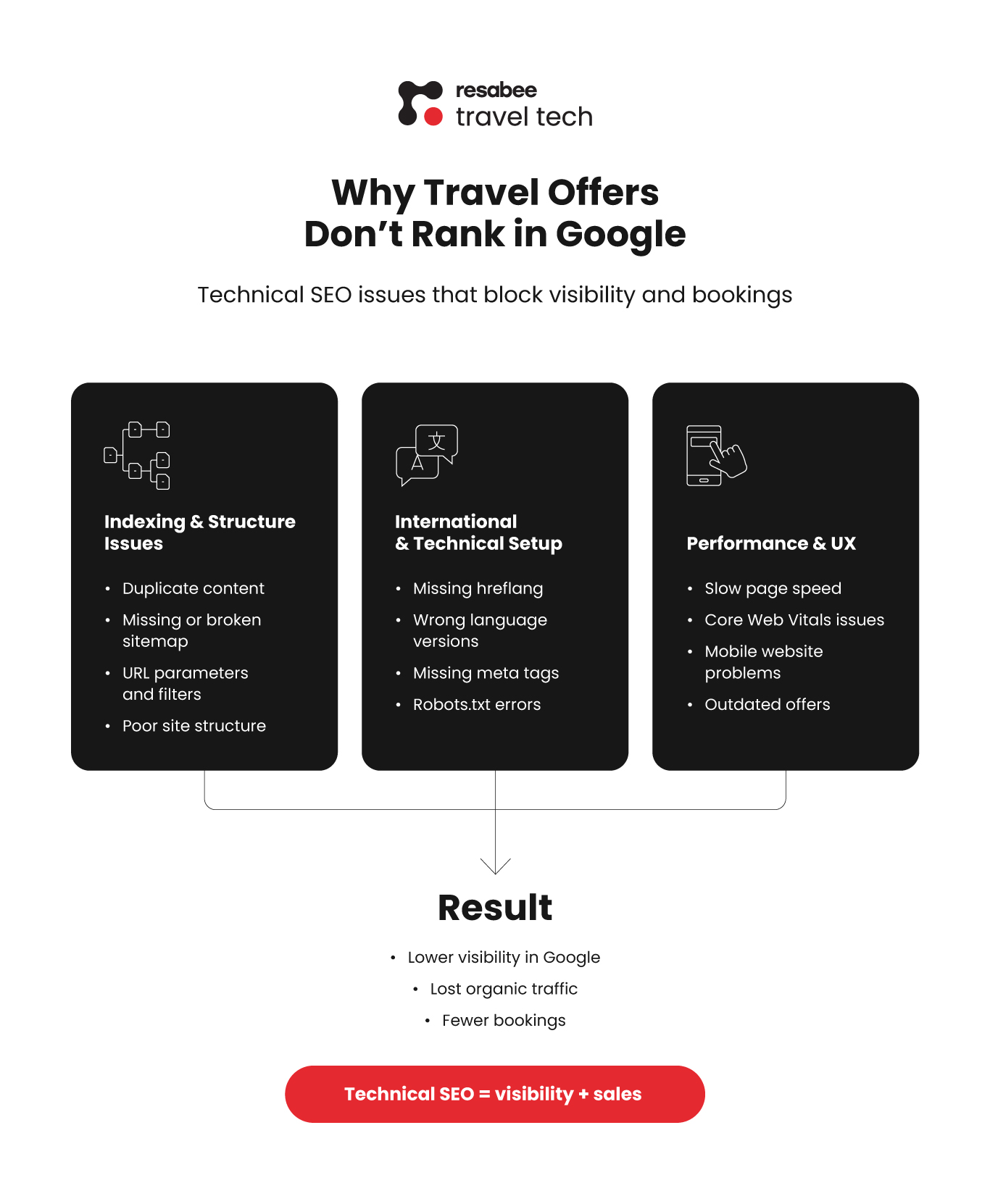 With Resabee Marketing for Travel, we help travel agencies and tour operators identify and fix these issues through SEO audits, website structure optimization, and long-term SEO and content strategy. The goal is simple: improve visibility, attract high-intent traffic, and turn search demand into bookings.